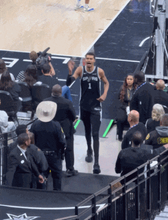 在通道中,乐观的文班还不忘告诉球迷